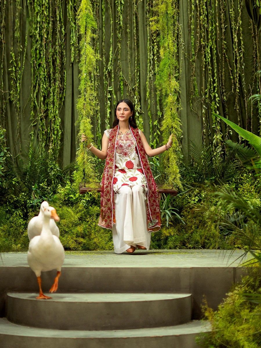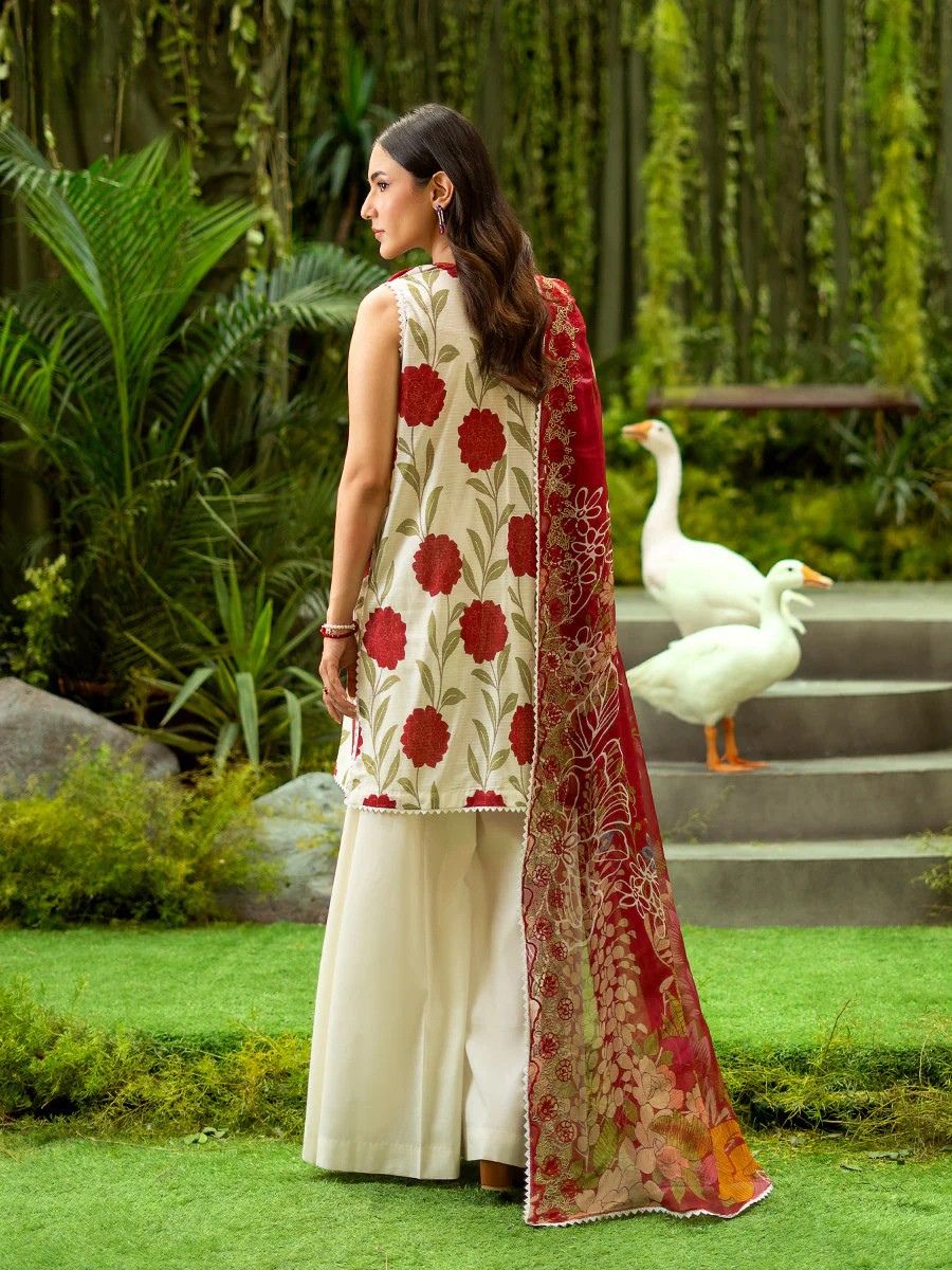 Ivory Red Luxury Embroidered Lawn 3PC Unstitched Suit | GLOROUS