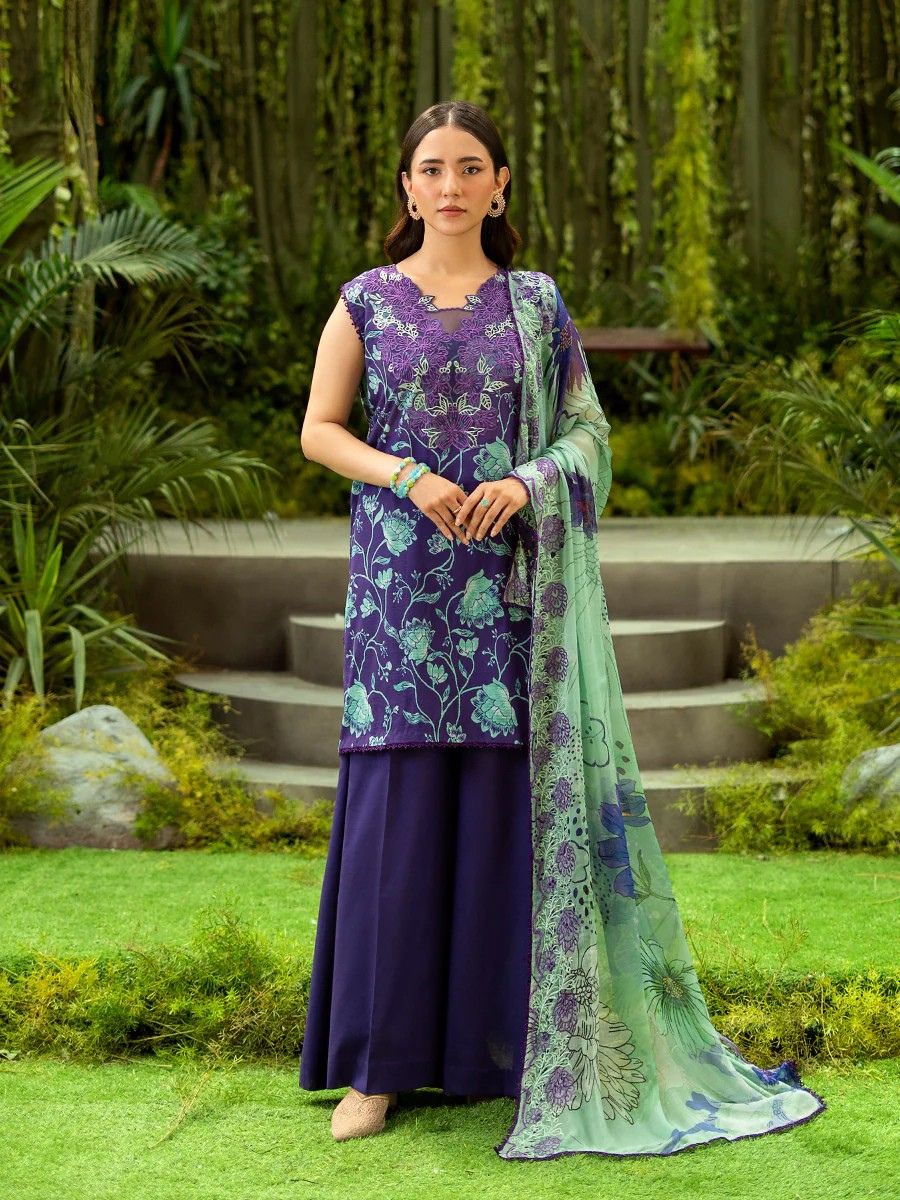 Royal Purple Floral Lawn 3PC Unstitched Suit | GLOROUS