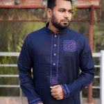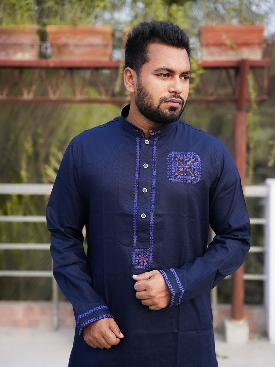 Deep Navy Geometric Embroidery Panjabi – GLORIOUS