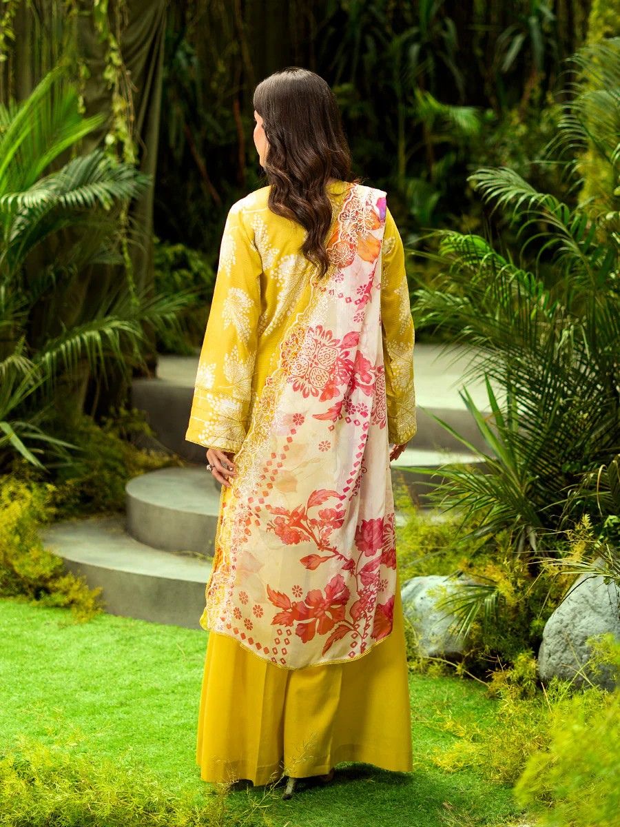 Mustard Gold Luxury Embroidered Lawn 3PC Unstitched Suit | GLOROUS