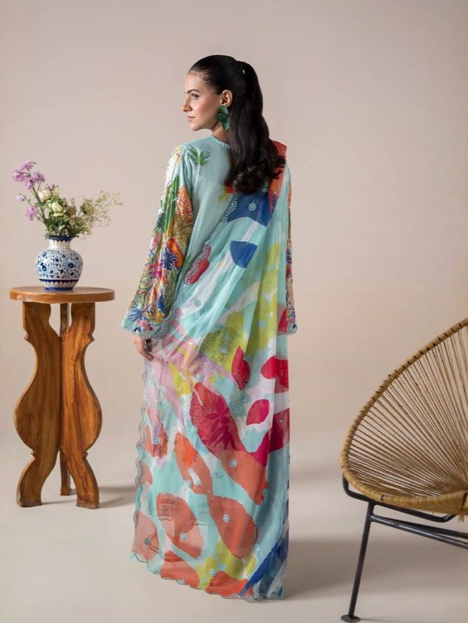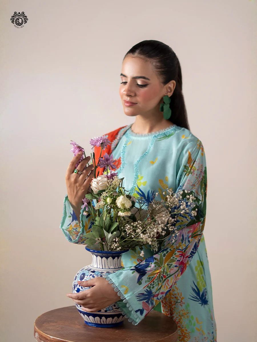 Pastel Aqua Garden 3PC Unstitched – GullJee | GLORIOUS