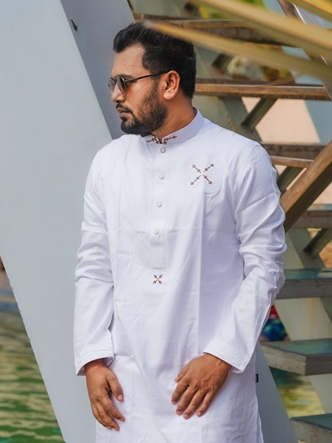 Refined White Panjabi with Signature Embroidery – GLORIOUS