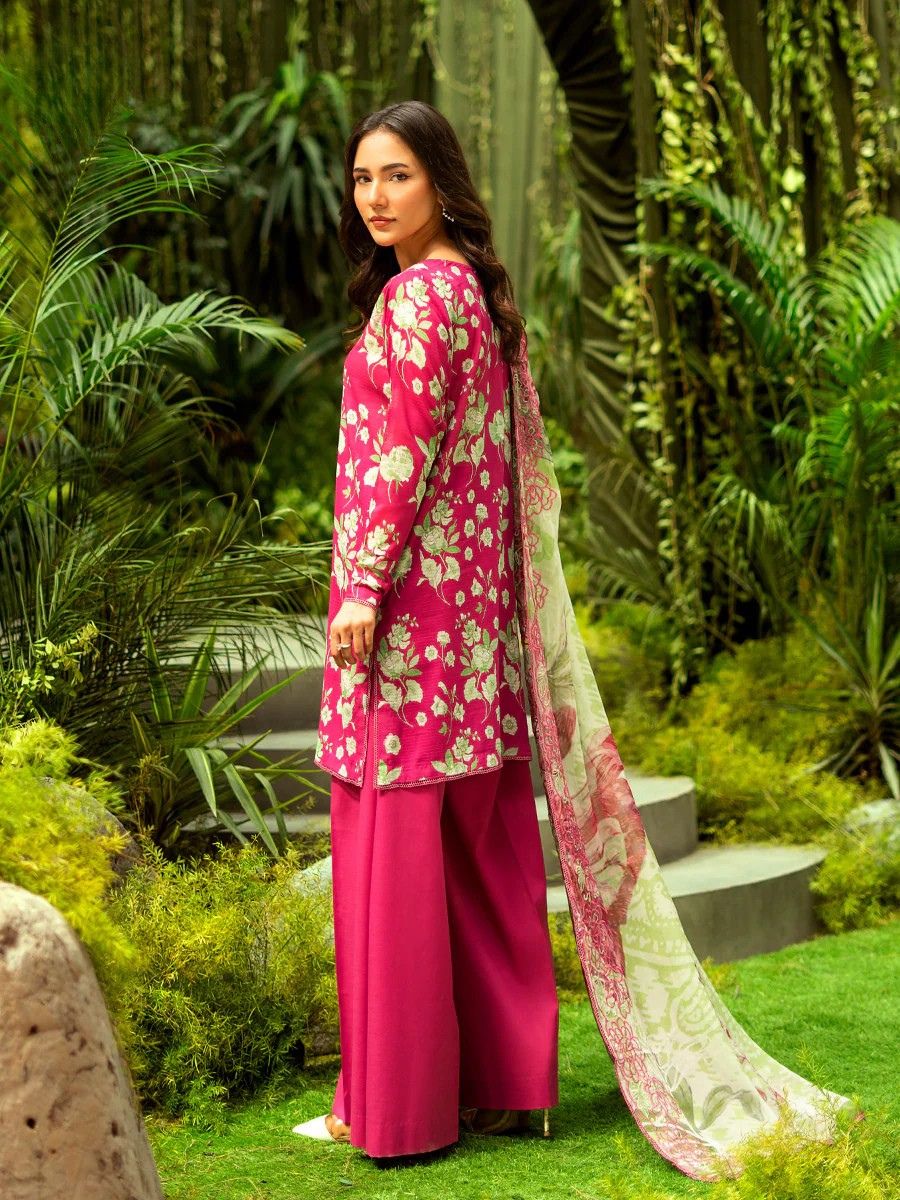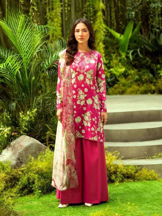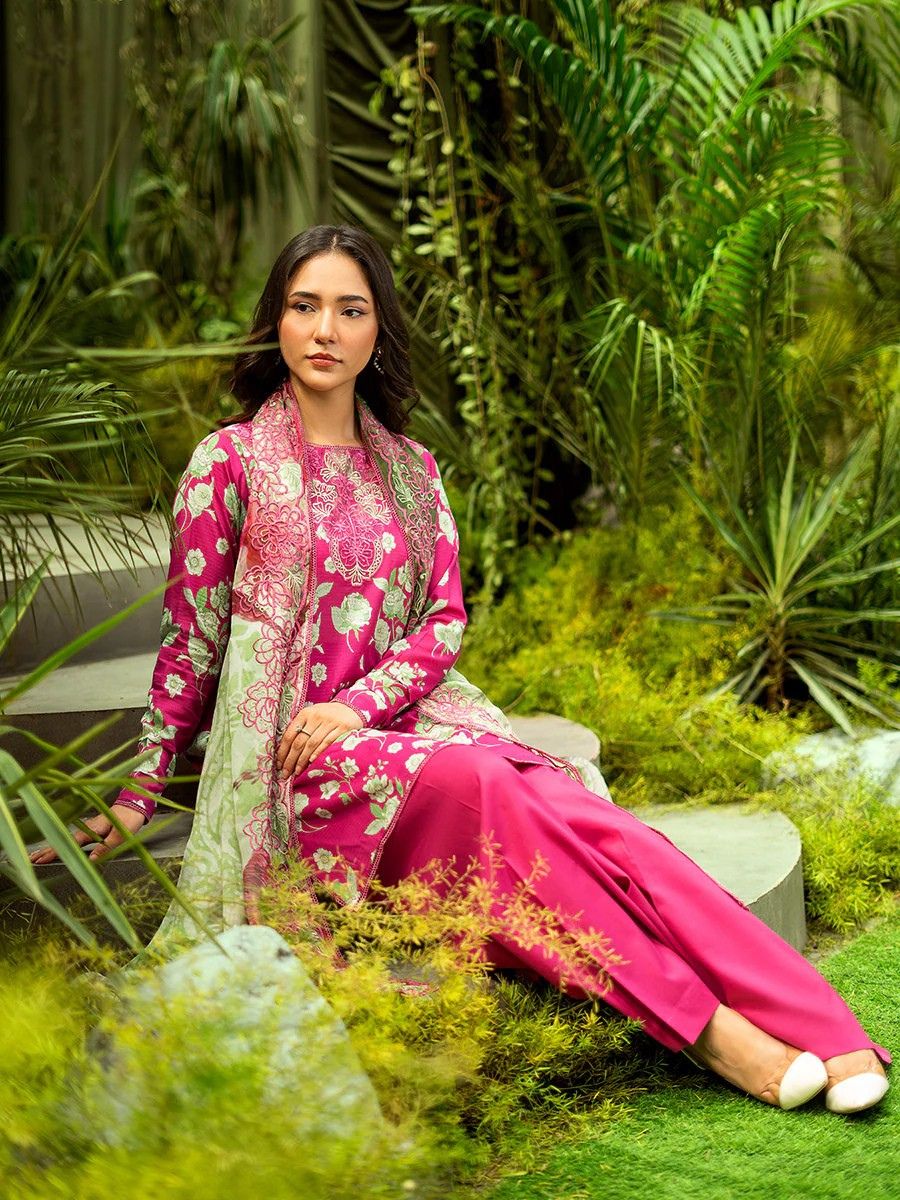 Rose Pink Embroidered Lawn 3PC Unstitched Suit | GLOROUS