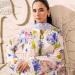 Soft Ivory Floral Printed Lawn 3PC Unstitched | MAHAJAL