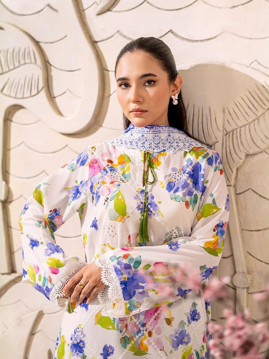- Dupatta: Digital printed pure lawn with embroidered cut-work