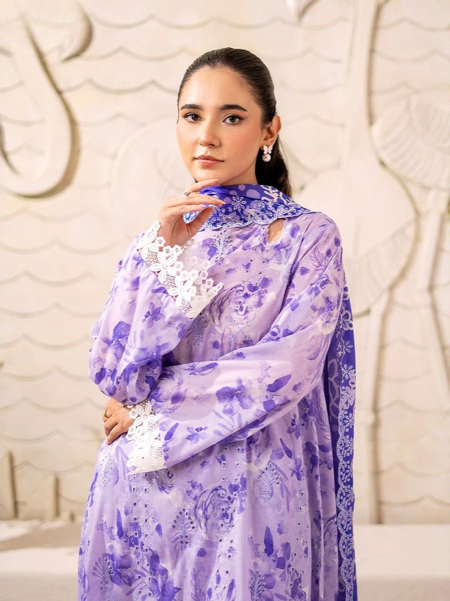 Soft Lavender Floral Lawn 3PC Unstitched | MAHAJAL